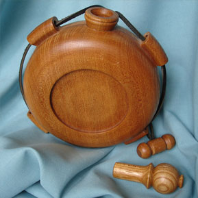 Reproduction Pilgrim Bottle in elm, used for centuries all over Europe to carry water by those undertaking journeys.